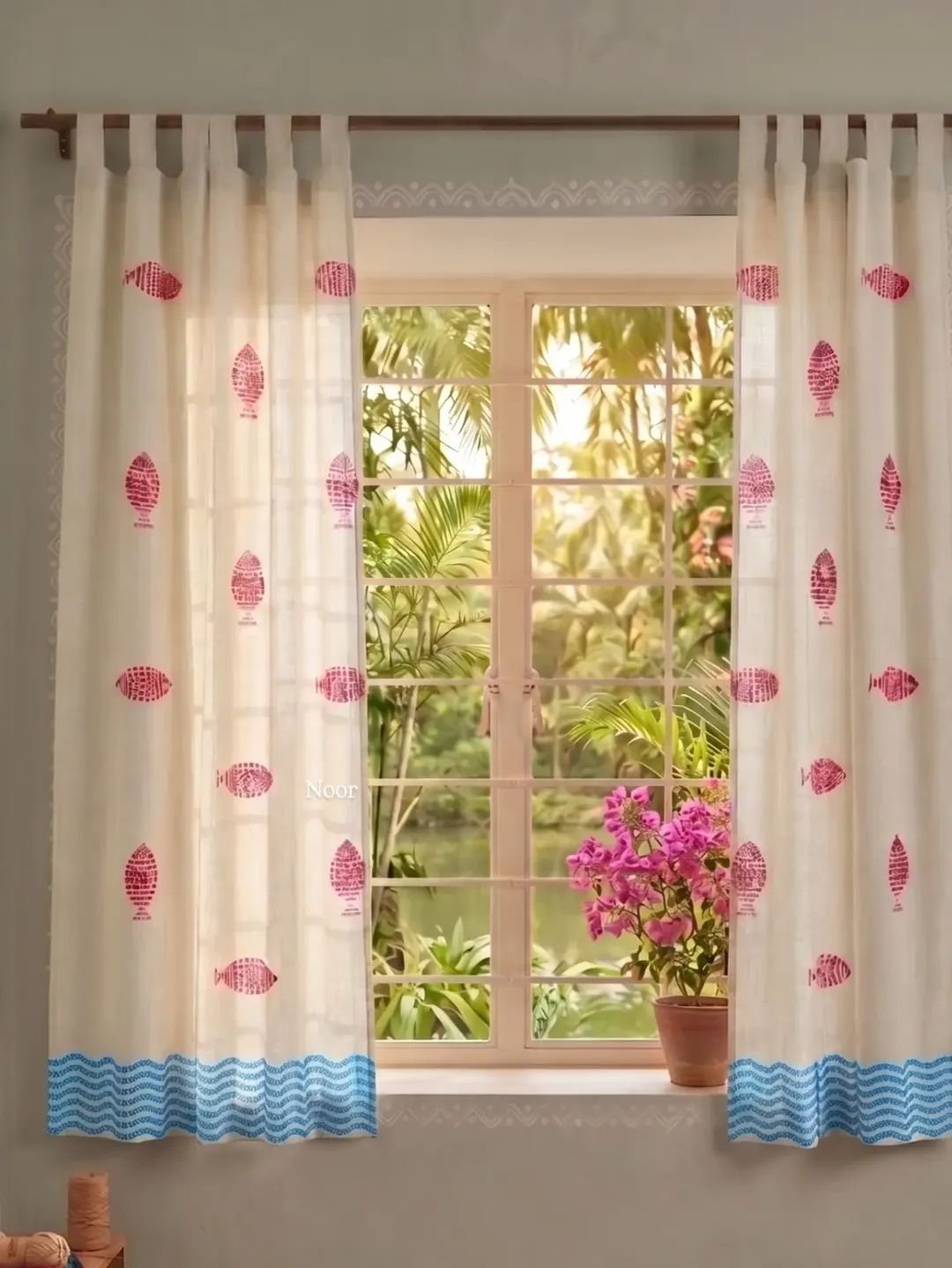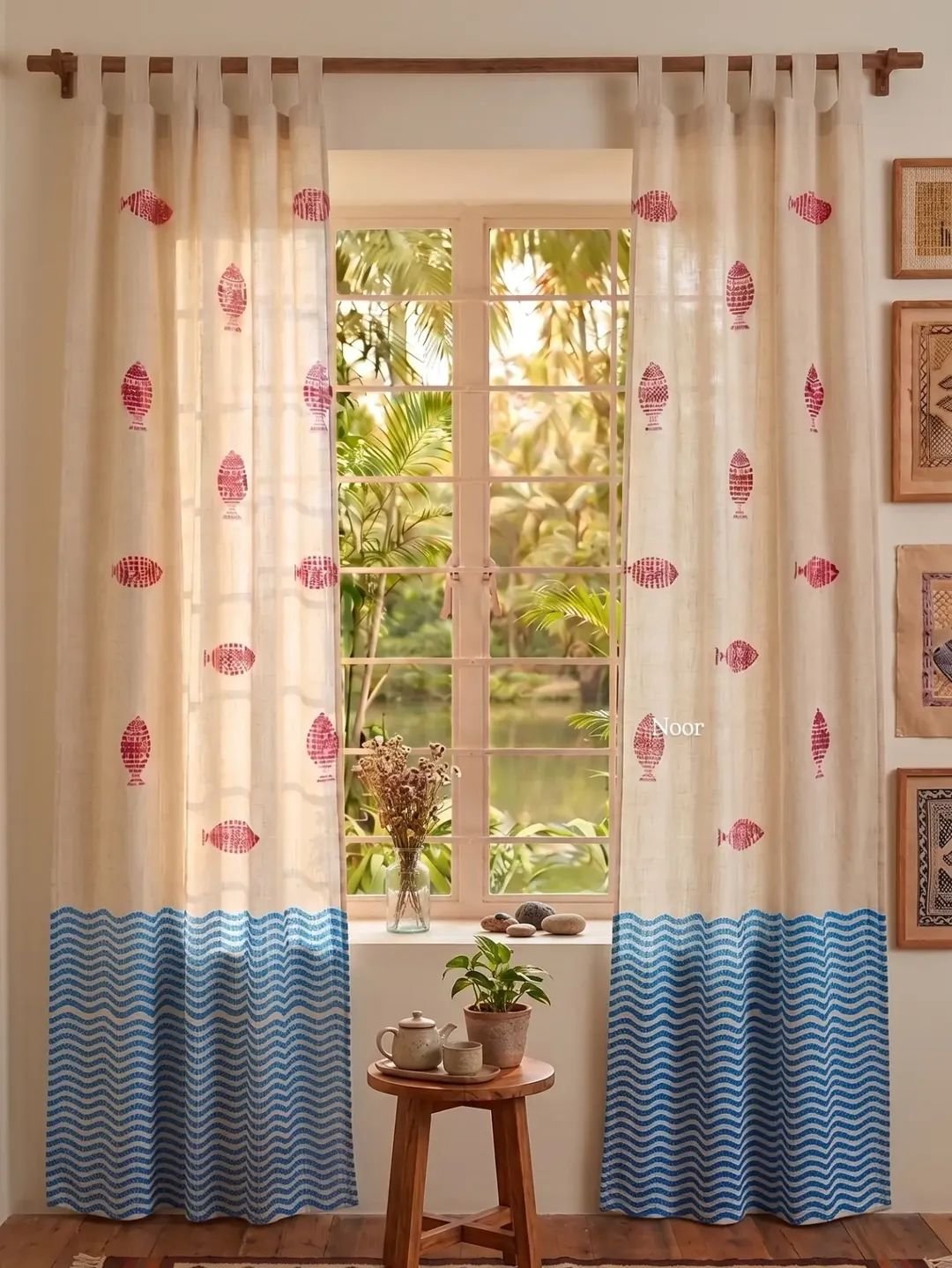 Handblock Printed Curtain – Fish in Sea